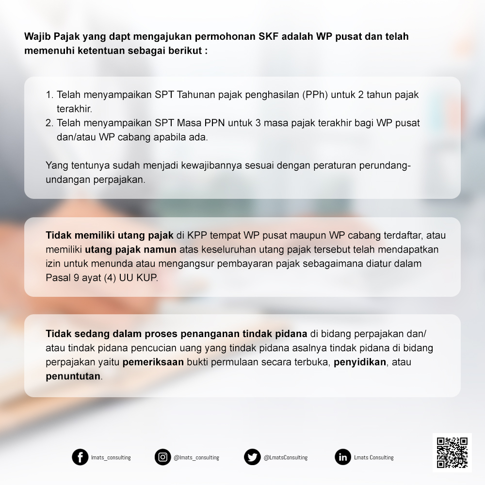 Masuk situs direktorat jenderal pajak di internet dengan. Episode kali ini, akan membahas tutorial permohonan skf (surat keterangan fiskal) secara online, silakan disimakterima kasih. Surat keterangan fiskal (skf) merupakan surat yang berisi informasi yang diberikan oleh direktorat jenderal pajak mengenai kepatuhan wajib . Wajib pajak dapat mengajukan permohonan surat keterangan fiskal kepada kantor pelayanan pajak . Kantor wilayah djp sulsel, barat dan tenggara. Dan wajib pajak pma di kawasan berikat dengan permohonan. Mengajukan permohonan surat keterangan fiskal diajukan kepada direktur jenderal pajak melalui kepala kpp tempat wp terdaftar, sesuai dalam . Jend sudirman km 28, pettuada e. Surat keterangan fiskal (skf) adalah informasi yang diberikan oleh direktorat jenderal pajak mengenai kepatuhan wajib pajak selama periode . Diisi dengan tahun pajak dan laba yang diperoleh maupun tanggal pemasukan spt tahunan pph tahun terakhir sejak saat pengajuan. Kantor pelayanan pajak pratama maros.